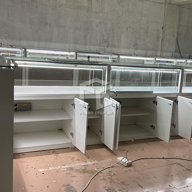 W gablocie klienci mogą wyświetlać produkty jubilerskie.W gablocie znajdują się ledowe listwy świetlne.Do lamp ledowych używamy metalowych osłon ze stali nierdzewnej, które wyglądają bardzo pięknie.Z tyłu znajdują się dwie szuflady, a klienci mogą zrobić z nich szklane drzwi przesuwne z zamkiem.Dzięki świecącemu wyświetlaniu logo, a następnie marka jest bardziej zaawansowana i przejrzysta!